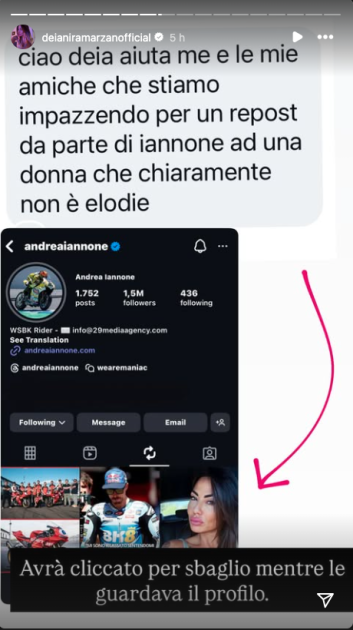 Ora la macchina del gossip si è riaccesa per un avvistamento sospetto su Instagram. L’indiscrezione è stata diffusa da Deianira Marzano che, pubblicando la segnalazione di una sua follower, ha mostrato che tra i repost di Iannone è comparsa la foto di una donna misteriosa.
