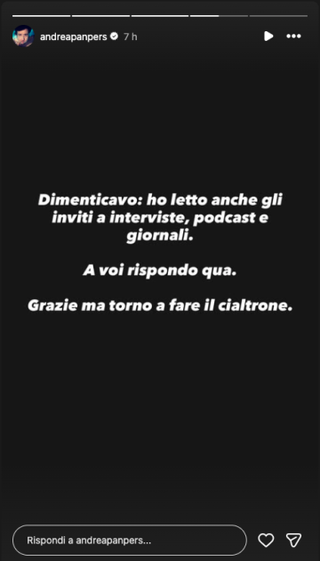 Pisani, facendosi una risata, ha confermato che non era così. Nonostante in queste ore abbia ricevuto moltissime richieste di interviste e inviti in programmi tv, lui ha detto chiaramente che non affronterà in pubblico nuovamente questo tema.