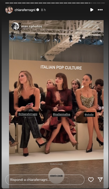 “Italian pop culture”, si legge sulla didascalia della foto e davvero non c’è nulla da eccepire. La Milano Fashion Week è ufficialmente partita e la sfilata di Roberto Cavalli non è proprio passata inosservata. A fare notizia, però, non sono stati gli abiti mostrati ma chi c’era in prima fila.