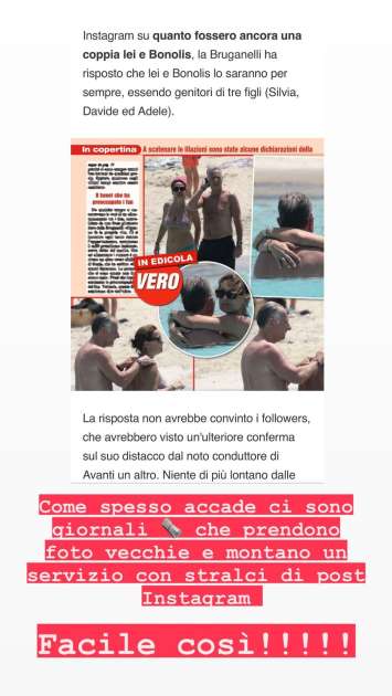 Poi però è arrivato il colpo di scena, perché Sonia Bruganelli, attraverso il suo profilo Instagram, ha smentito l’articolo; in una stories ha scritto: “Come spesso accade ci sono giornali che prendono foto vecchie e montano un servizio con stralci di post Instagram. Facile così”.