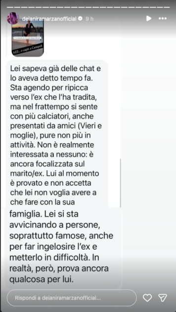 Poco dopo, l’esperta di gossip Deianira Marzano ha pubblicato il messaggio di una sua fonte che ha spiegato che “sta agendo per ripicca” dopo i tanti tradimenti, anche se in realtà prova ancora qualcosa per Alvaro.