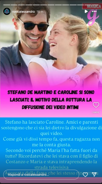 Ovviamente sono pettegolezzi da prendere con le pinze e non possiamo sapere se De Martino vorrà in qualche modo intervenire. È probabile, come ha già fatto in passato, che eviterà ogni possibile commento. Caroline, invece, risponderà?