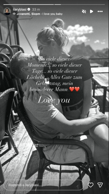 Ma nel giorno del compleanno di Bastian Muller, Ilary Blasi ha fatto una dedica speciale al suo fidanzato tramite una storia su Instagram. La conduttrice ha condiviso un’immagine che li ritrae mentre stanno per baciarsi, in vacanza tra le montagne durante il periodo estivo. Accompagnata da una scritta nella lingua madre di Bastian, il tedesco, che possiamo tradurre in: