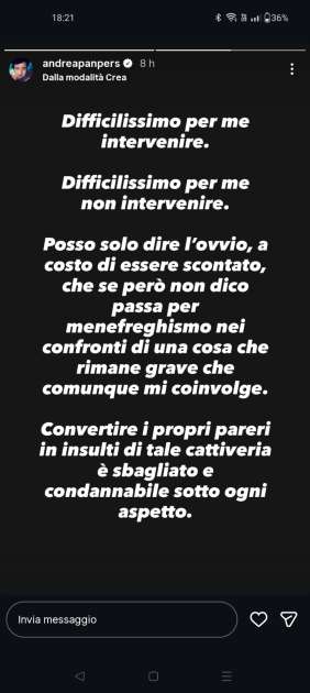 I toni delle accuse sono spietati. In queste ultime ore anche lo stesso Pisani si è sentito costretto a intervenire, condannando i messaggi.