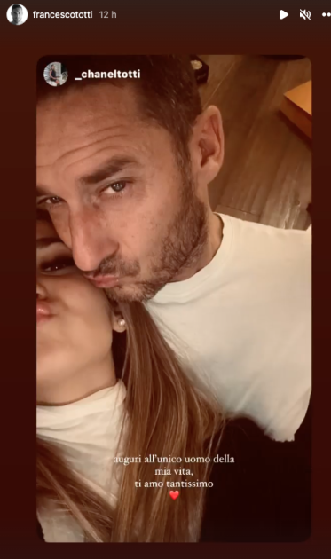 Chanel ha postato una foto di lei con papà Totti che gli da un bacio sulla guancia e l’ha accompagnata dalla dedica: “Auguri all’unico uomo della mia vita, ti amo tantissimo”. Totti l’ha subito ripostata.