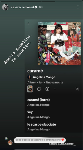 Tra i tanti che hanno reagito a questa bellissima sorpresa c’è stato anche Cesare Cremonini. Il cantante, nelle sue storie di Instagram, ha pubblicato l’album aggiungendo questa dedica: “Ammiro Angelina. In ascolto”.