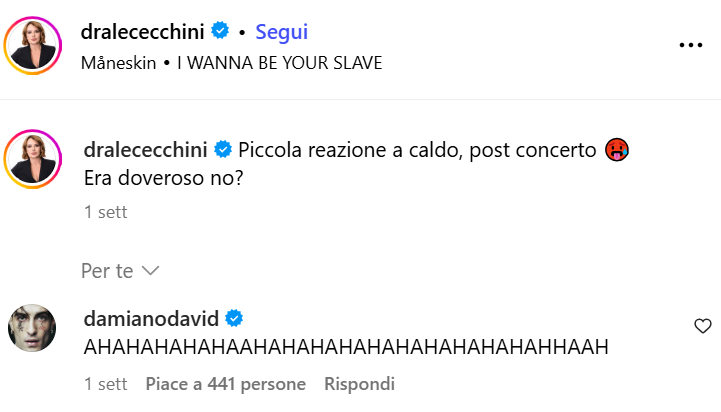 La risposta di Damiano non si è fatta attendere: tra i commenti del video, infatti, c’è proprio quello del profilo ufficiale del cantante, che risponde con una lunga ed eloquente risata. Una smentita che sottolinea come la chirurgia estetica e la rockstar non si siano mai incontrate.