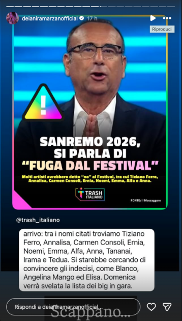 Ora sta circolando l’indiscrezione che Conti starebbe facendo di tutto per portare alcuni artisti ad accettare. A svelarlo è l’esperta di gossip Deianira Marzano che, citando un post di trash italiano, spiega che il direttore artistico sia al lavoro per convincere gli indecisi, in particolare Angelina Mango, Blanco ed Elisa.