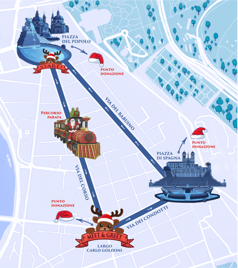 La Christmas Parade trae ispirazione dai celebri eventi benefici americani come il Red Nose Day, capaci di mobilitare intere comunità. Roma raccoglie questo spirito e dà vita alla sua versione: un’esperienza destinata a crescere rapidamente fino a diventare il più grande flash mob natalizio d’Europa, un appuntamento popolare e solidale che ogni anno possa generare risorse concrete a supporto dell’ospedale dei bambini.