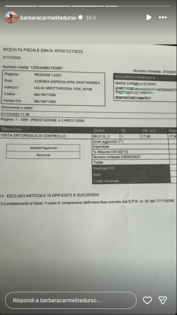 La concorrente ci ha tenuto a raccontare nel dettaglio questa visita, facendo vedere che non ha ricevuto trattamenti di favore o saltato file e mostrando addirittura anche la ricevuta del pagamento.