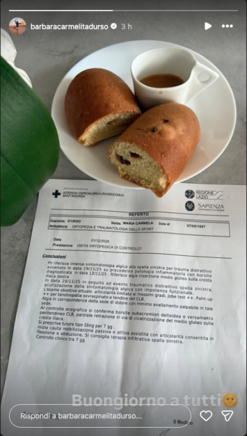 Barbara D’Urso ha commentato la foto del referto con un “buongiorno a tutti” seguito da un sole, ma sembra evidente che il suo umore non dev’essere stato dei migliori. Al momento, la conduttrice non ha aggiunto nuovi contenuti e non ci sono notizie ufficiali, ma sembra evidente che non sarà possibile per lei partecipare alla prossima puntata di Ballando con le stelle.