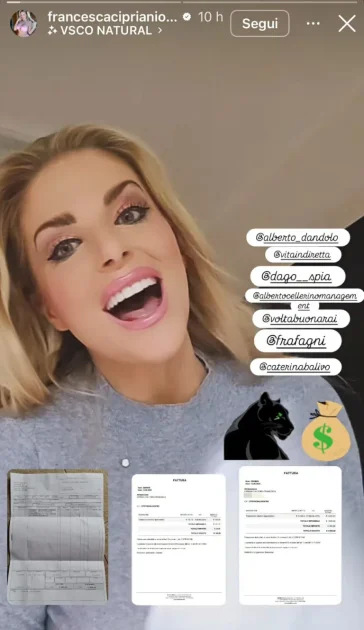 Di Francesca Cipriani, ad esempio, ha detto che è una “da braccino corto” che ogni volta che viene da lei poi non vuole mai pagare. La modella, nota al grande pubblico per essere stata la “Miss” di Avanti un altro e per aver partecipato a La Pupa e il Secchione, non ci ha messo molto a rispondere.