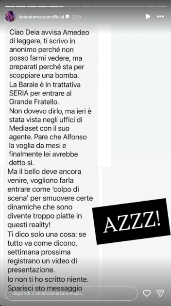 Sul social si legge anche che, la prossima settimana, dovrebbero registrare un video di presentazione proprio con la Barale. Ma non è l’unico nome a circolare: secondo gli esperti, anche una coppia sarebbe molto vicina a fare il suo ingresso nella casa più spiata d’Italia.