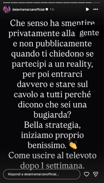 Nelle ultime ore sono uscite altre due indiscrezioni. Secondo l’esperta di gossip Deianira Marzano, è sicura al 100% l’ex Temptation Island, Lucia Ilardo, mentre il giornalista Gabriele Parpiglia dà per certa Evelina Sgarbi, la figlia di Vittorio Sgarbi.