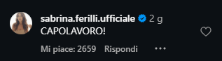 Il video, oltre a scatenare le risate tra i fan, è diventato virale ed è arrivato fino a Sabrina. La Ferilli, ancora una volta, ha dato prova della sua grande ironia e ha commentato con una sola parola a caratteri maiuscoli: “CAPOLAVORO!”, con un punto esclamativo a testimoniare che non solo ha visto e apprezzato il video parodia, ma, siamo sicuri, si sia anche fatta una grossa risata.